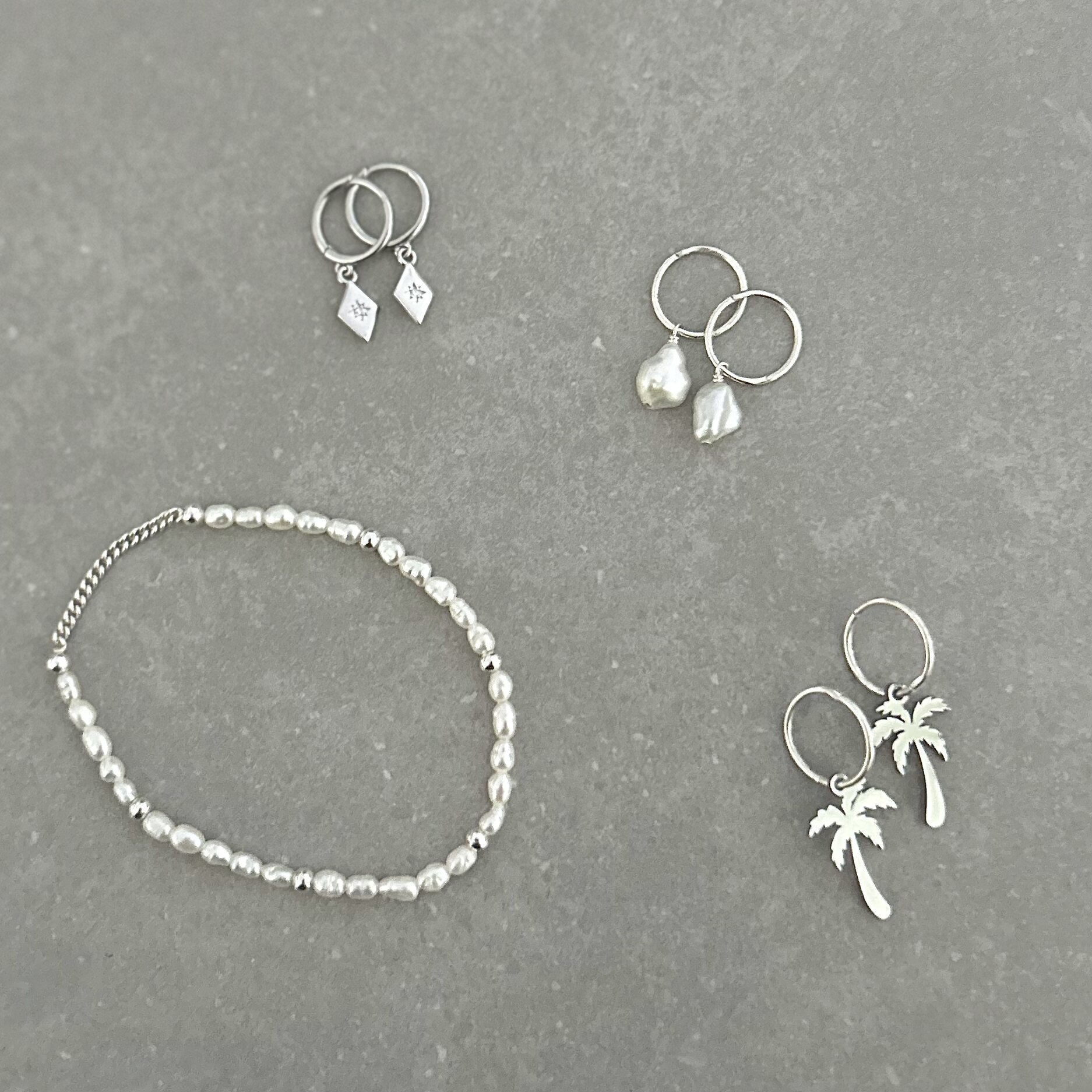 Shop › Holiday Bracelet Silver Image 1 of 1 Holiday Bracelet Silver $65.00 Sterling silver and Aa+ Freshwater Pearls. 17.5 cm bracelet can be made smaller or larger by request. Quantity: Purchase Added! Sterling silver and Aa+ Freshwater Pearls. 17.5 cm bracelet can be made smaller or larger by request.